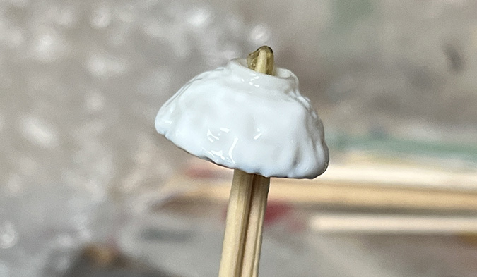 Fortuitously I’d recently purchased two more of these hanging lamps on eBay. Clear Gallery Glass might have worked better than the white, but I didn’t want to ruin another shade experimenting with it, so I coated the new one with gloss varnish instead.