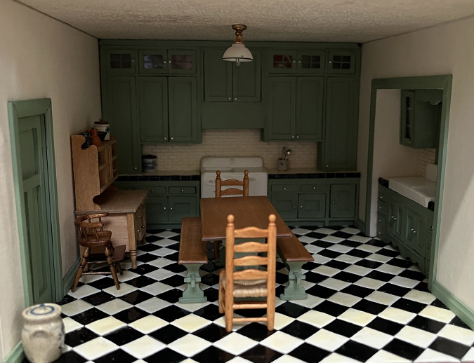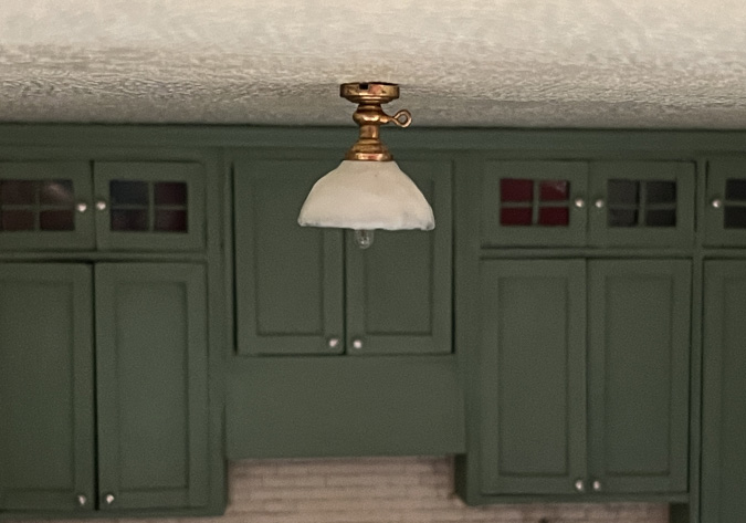 Before I move on to the Mansard Victorian’s nursery, here’s a quick post to show how I finished the electrical in the kitchen. There are three lights in here: a ceiling fixture, a bulb in the hood, and a bulb over the sink.
