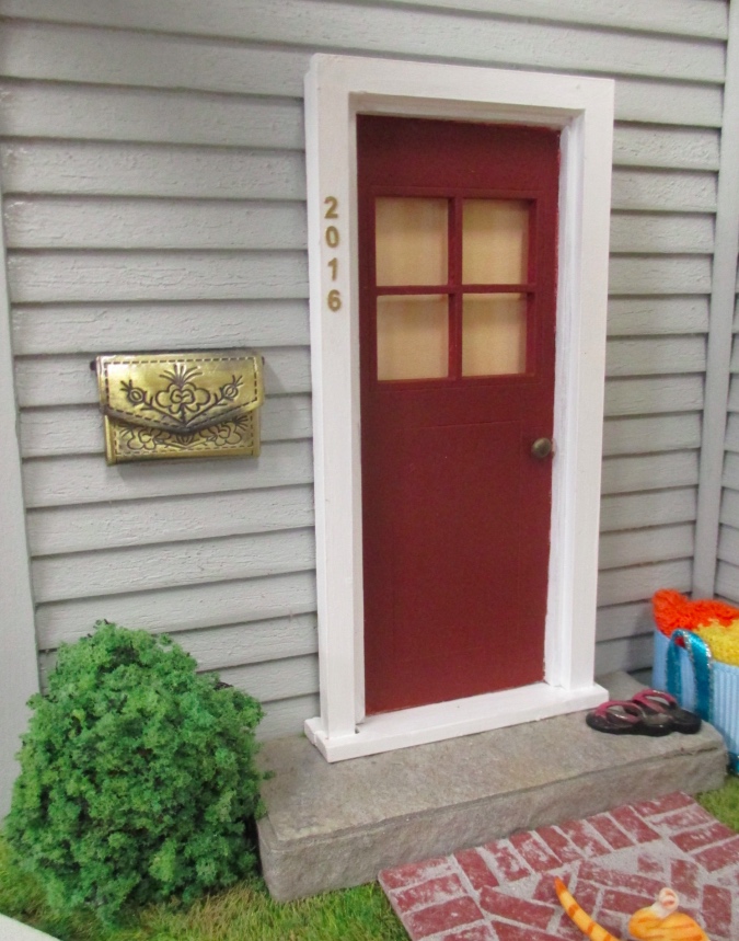 I like house numbers on dollhouses to mean something. I tend to create a number out of the month and year the house was finished, but I didn’t have enough 1s to do 1116. I decided instead to do 2016… but now I’m not sure I like it. All I see when I look at it is a year, not a house number.