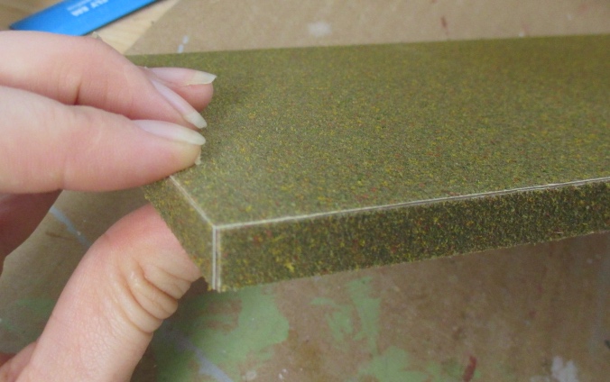 The seams are successfully disguised! I’ll hold off on doing the rest of the grass until the structure is finished.
