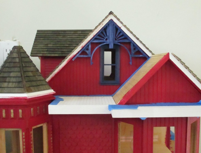 The past few weekends I’ve continued to paint the Turret House. I’ve also spent a small fortune on various trims and components to dress up the exterior. Here’s how it looks right now.