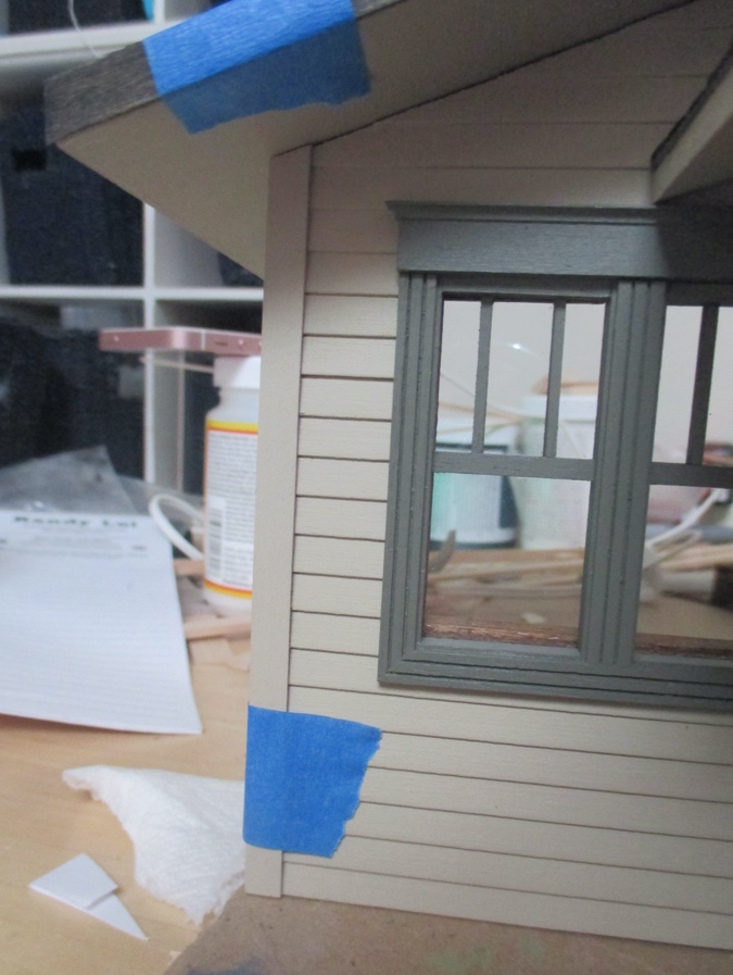 On the front corners of the house, I used 5/16″ x 1/32″ angle trim that came with the kit.