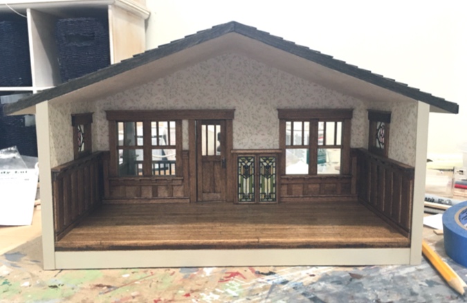 And here’s the finished house. I’m still planning to add a mailbox and a plant or bench to the left of the door. Maybe I’ll cross stitch a Craftsman style welcome mat.