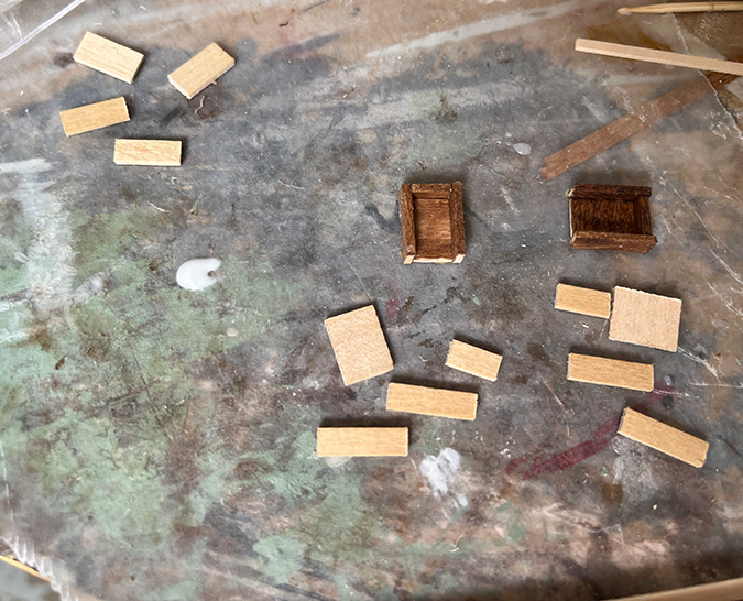 For the skinny top drawer, I used the side pieces from the kit, but cut my own bottoms, backs and fronts. These drawers are 3/16″ tall. I then cut another set of pieces for the new bottom drawers.