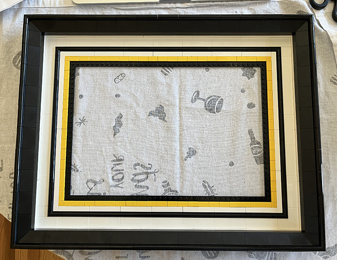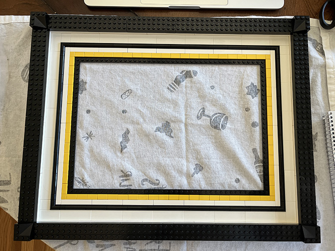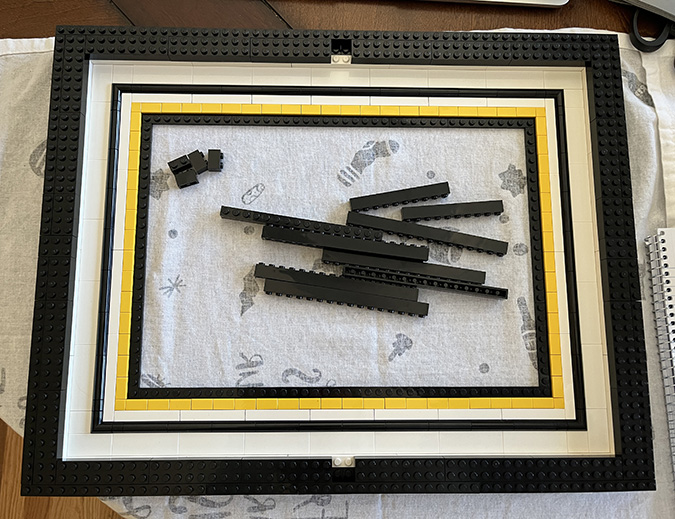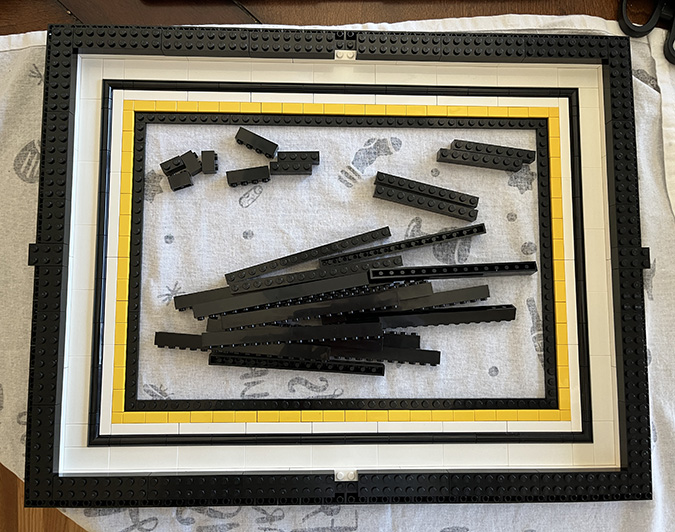 LEGO’s instructions have you add the frame halfway through the build. I skipped over those steps (the #6 bags) and finished the artwork before starting on the frame.
