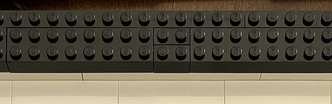 There’s one spot on the bottom where the plate seam and tile seam line up. I snapped one of the black curved pieces over this to hold that seam together.