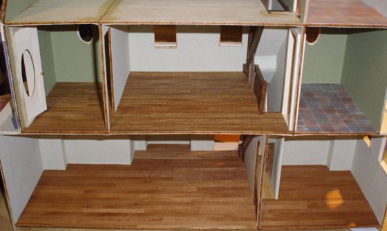 With the exterior (mostly) finished, I turned my attention to the Rosedale’s interior details, starting with hardwood floors.