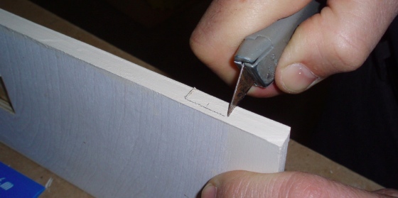 We started by tracing a pencil line around the hinge, and scoring this with a utility knife.