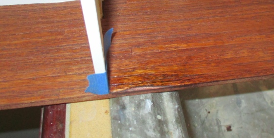 I re-stained the sanded part. It looks a little wonky, but this isn’t really obvious once everything’s in place.