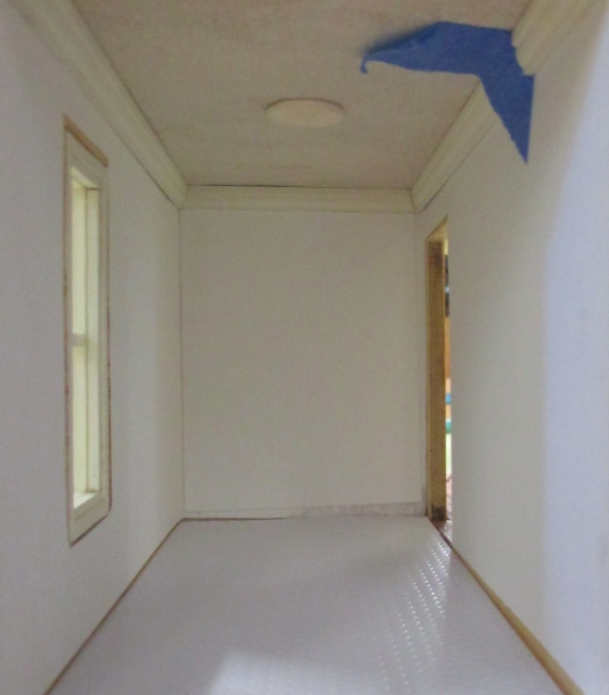 Here’s the view in from the living room. You can’t tell the wallpaper was patched in.