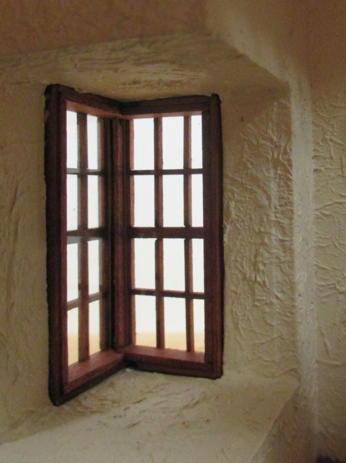 Anyway. Before packing up all my stuff, I finished a few projects that were close to being done, thinking that if the stuff stays packed for months/years (noooo!) it would be too hard to pick up where I’d left off. One of those projects was the windows on the Spanish revival artist’s cottage. But before I get to that, I have to go back even further, because I never posted a follow-up to my questionable barrel tile roof, finished almost a year ago.